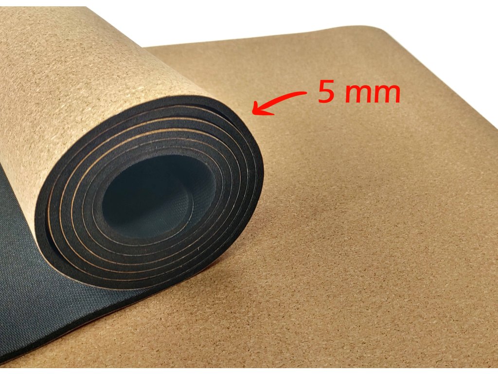 Korek má přírodně voděodolné vlastnosti – podložku je možné umyvat a je vhodná na cvičení hot-jógy. Díky speciálnímu vzoru na spodní vrstvě pevně přilnavá k podlaze. Na dotek je hladká a příjemná, ale neklouže. Tloušťka podložky je 5 mm, což je o 1–2 mm více než u běžné podložky. Díky své tloušťce podložka výborně drží tvar nejen na rovné podlaze, ale i například na trávě nebo písku.